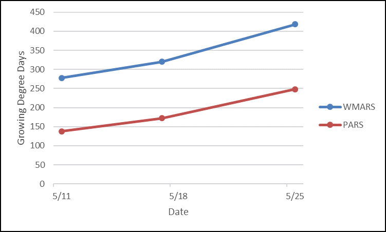 Flea beetle at PARS Marquette at PARS; “2-3 leaves separated” E-L number = 9 Frontenac at PARS; “2-3 leaves separated” E-L number = 9 St. Croix at PARS; “2-3 leaves separated” E-L number = 9 La Crosse at PARS; “2-3 leaves separated” E-L number = 9 Brianna at PARS; “budburst” E-L number = 4
