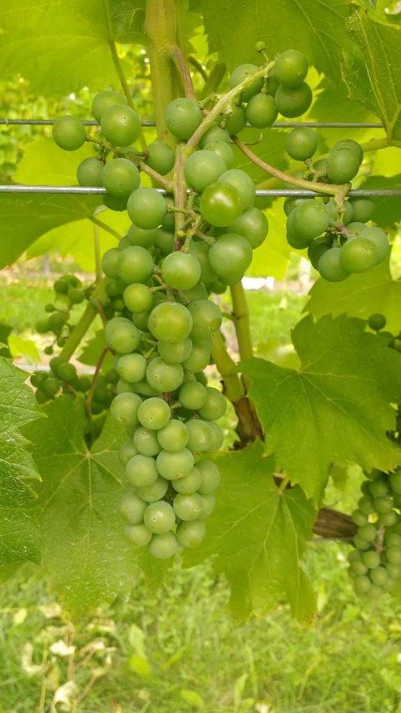 At the West Madison Agricultural Research Station (WMARS) in Madison, WI, grapevine development has reached E-L* stage 36 (“Berries with intermediate sugar values”). Currently, vines are still behind in development compared to 2017 and 2018 seasons due to the cooler spring. Similarly, at the Peninsular Agricultural Research Station (PARS), all varieties are at E-L stage 35 (“Berries begin to color and enlarge”).