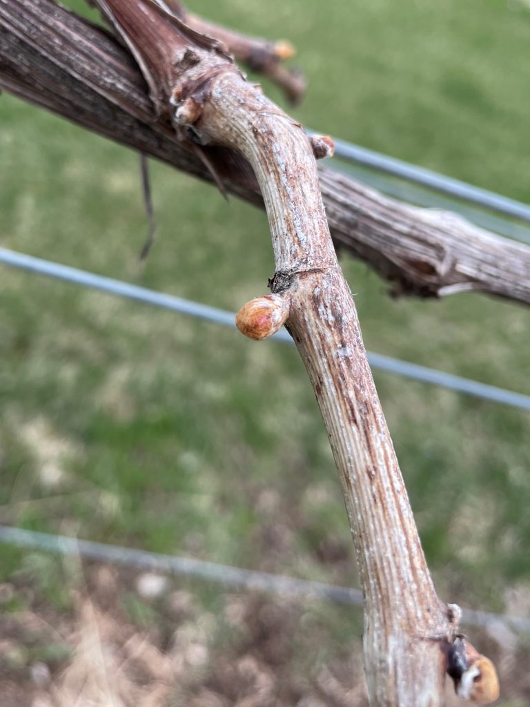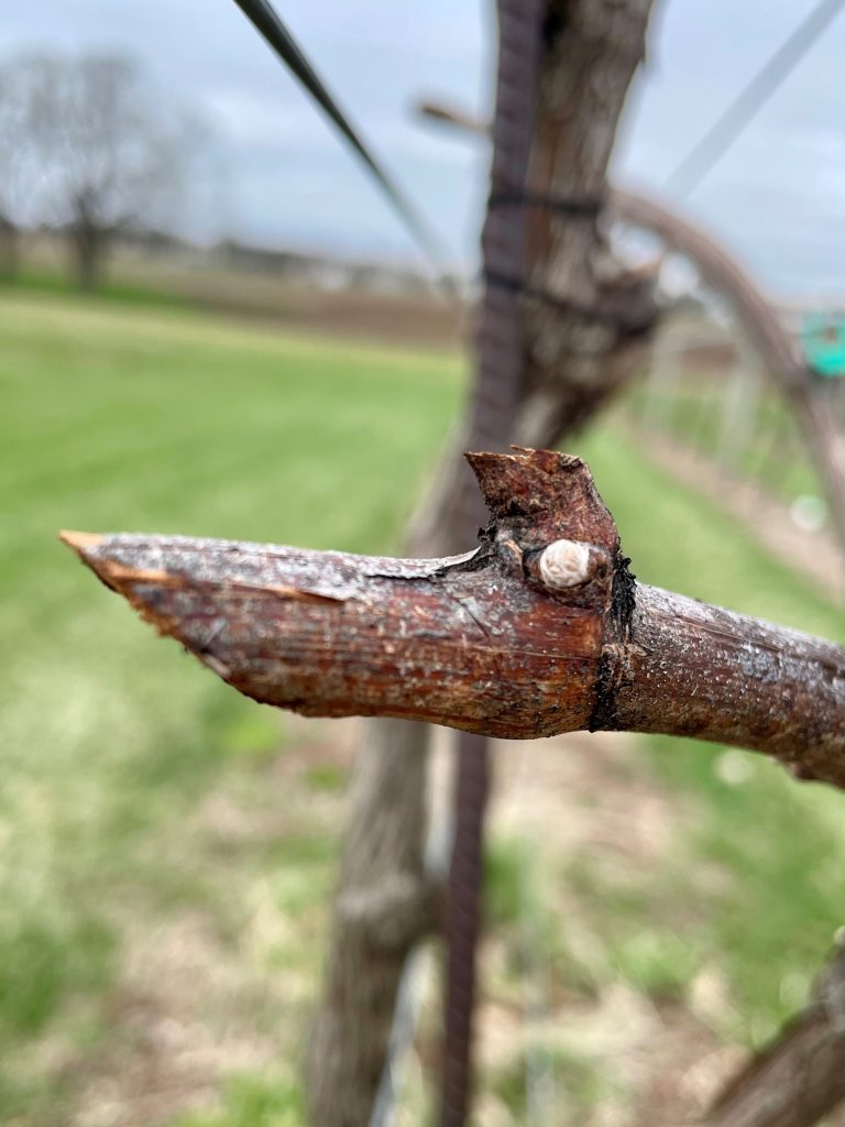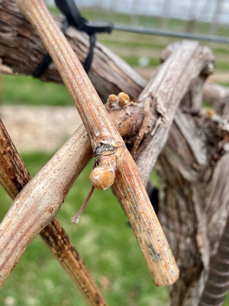 At the West Madison Agricultural Research Station (WMARS) in Madison, WI, shoot development across most cultivars (Brianna, Frontenac, Itasca, La Crescent, and Marquette) ranged between E-L* stage 2 (“Bud scales opening”) and stage 3 (“Wooly bud with or without green showing”), while Crimson Pearl and Petite Pearl ranged from stage 1 (“Winter bud”) to stage 3 and stage 2, respectively. Given the current weather forecasts for relatively cool temperatures, budburst (E-L stage 4) could be more than another week away for the earliest varieties. However, this very early spring puts all the cultivars’ development ahead of this time last year and in 2019. At the Peninsular Agricultural Research Station (PARS), all varieties are still at E-L stage 1 (“winter bud”).