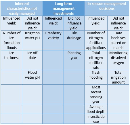 - What inherent bed characteristics and production decisions have the greatest impact on cranberry yield?