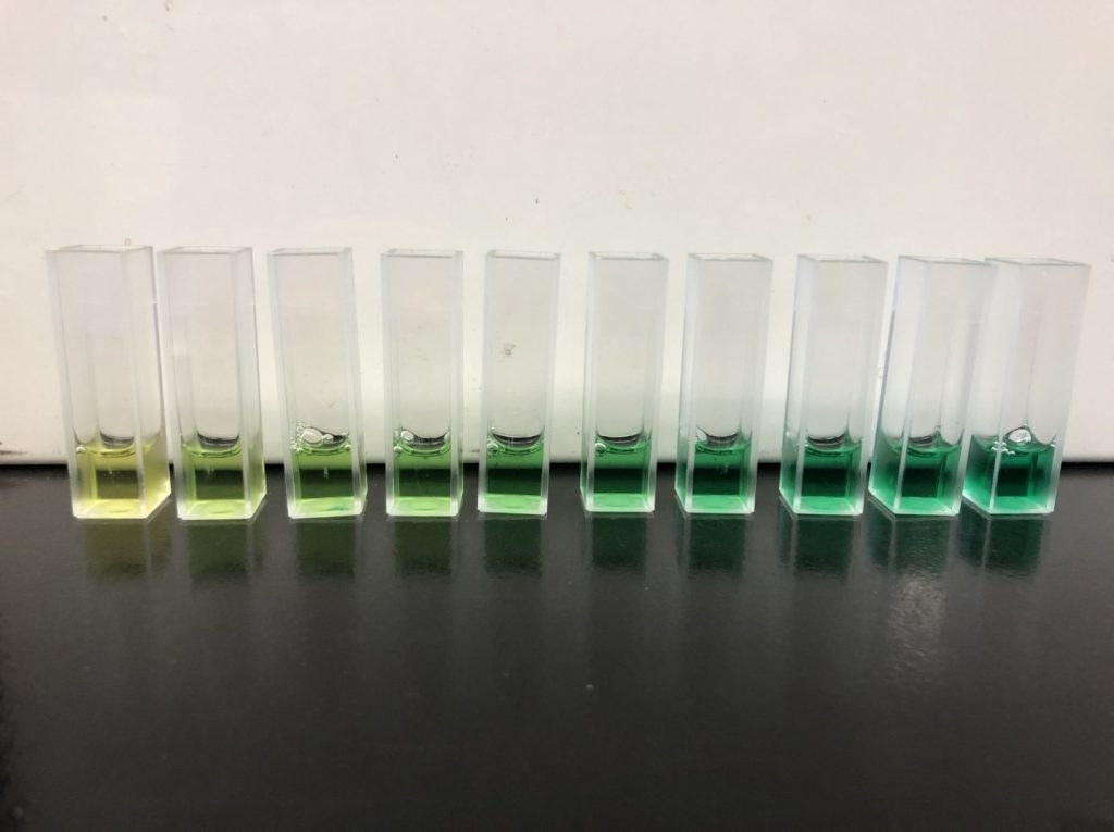 We have isolated 90 different types of soil bacteria that can perform this reaction in petri dishes and test tubes. We confirmed and measured this using a malachite green dye (BioAssay Systems, 2021), which changes color from yellow to green at a measurable rate when phosphorus is dissolved in water, pictured below (Figure 2). We are preparing to test their ability to dissolve unavailable phosphorus precipitates in greenhouse trials. After amending the soil with precipitated phosphorus chemicals, we will confirm that the plant is utilizing more phosphorus than what liquid fertilizer alone could explain.