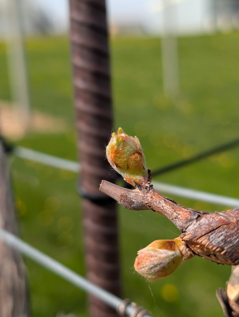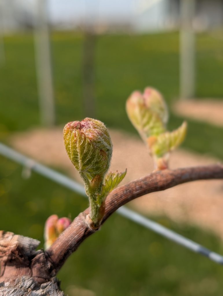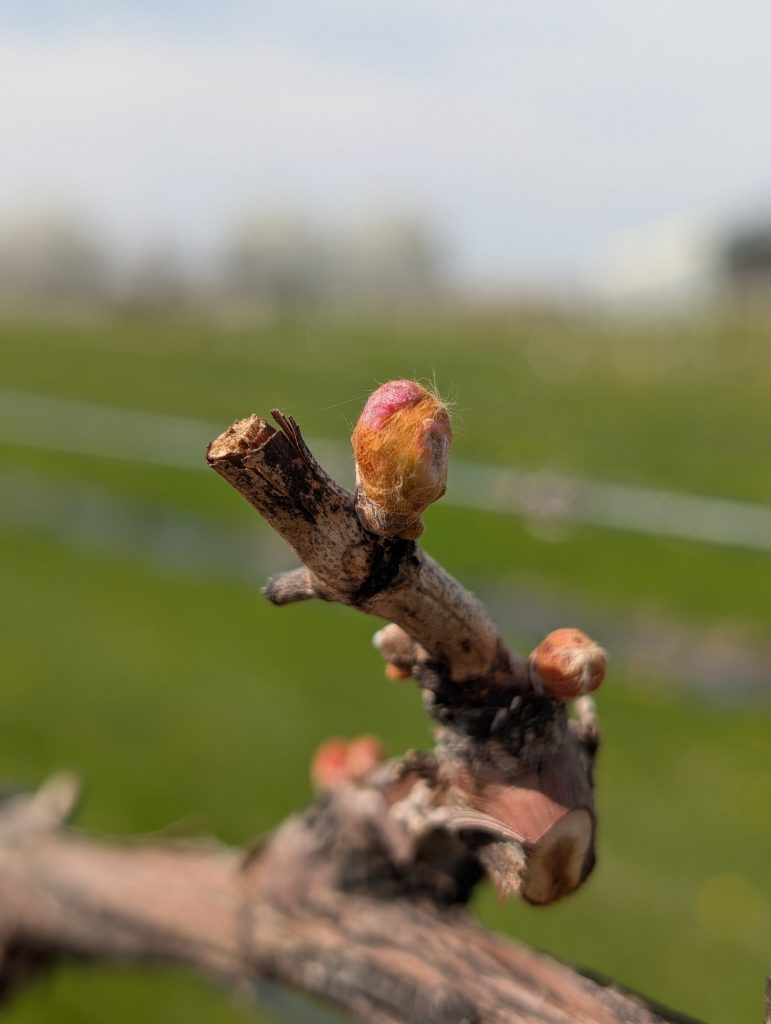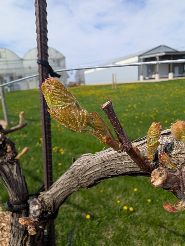 At the West Madison Agricultural Research Station (WMARS) in Madison, WI, buds average around E-L* stage 3 (Wooly Bud +/- green showing) on Petite Pearl to stage 7 (First leaves separated from shoot tip) in Frontenac and LaCrescent. At the Peninsular Agricultural Research Station (PARS) all cultivars are at bud swell stage. Bud burst to first leaf separation is expected for all varieties this week with the forecasted warm temperatures.