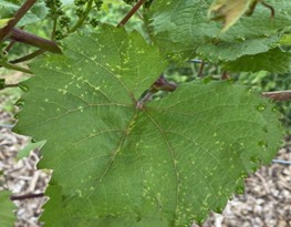 Warm temperatures and humid conditions favor infection, making early-season weather an important driver of disease risk. Several cold-climate grape varieties commonly grown in the Midwest, including Marquette, Frontenac, and Valiant, are susceptible to black rot.